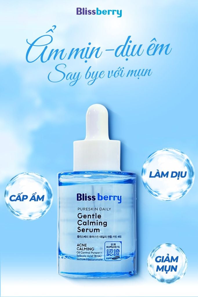 Serum ẩm dịu, giảm mụn Blissberry Pureskin Daily Gentle Calming