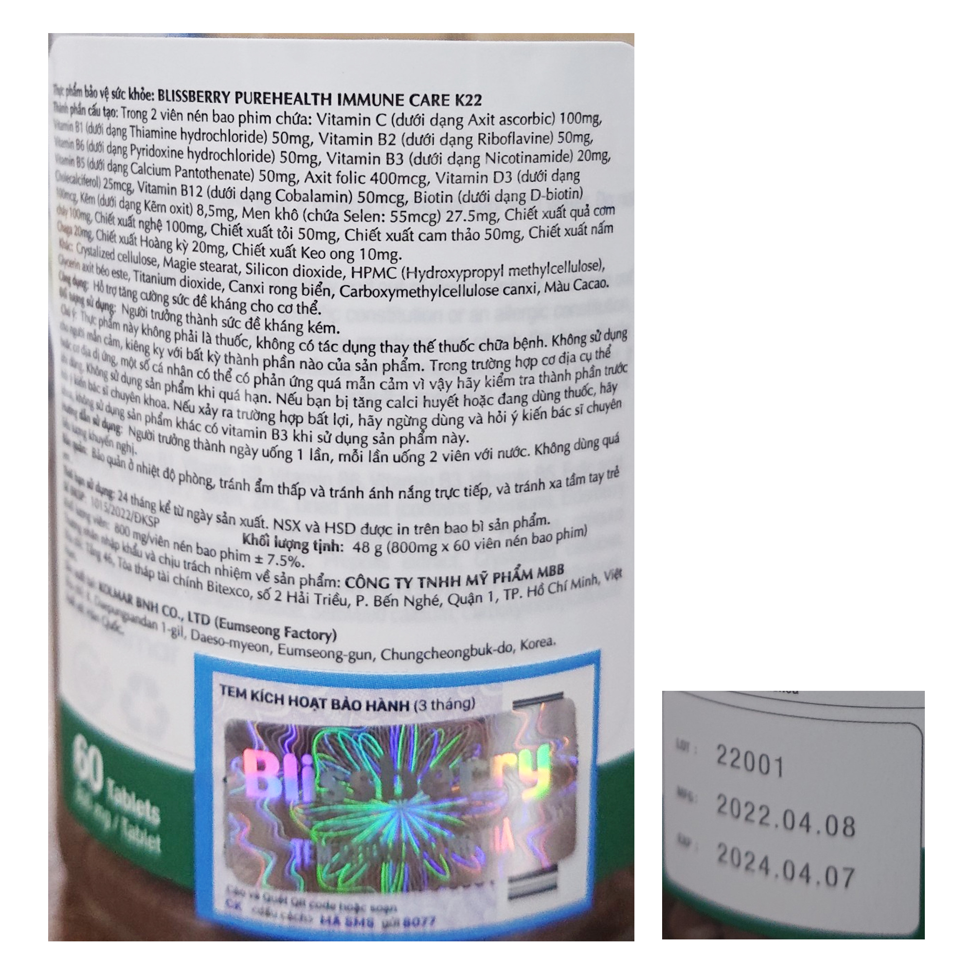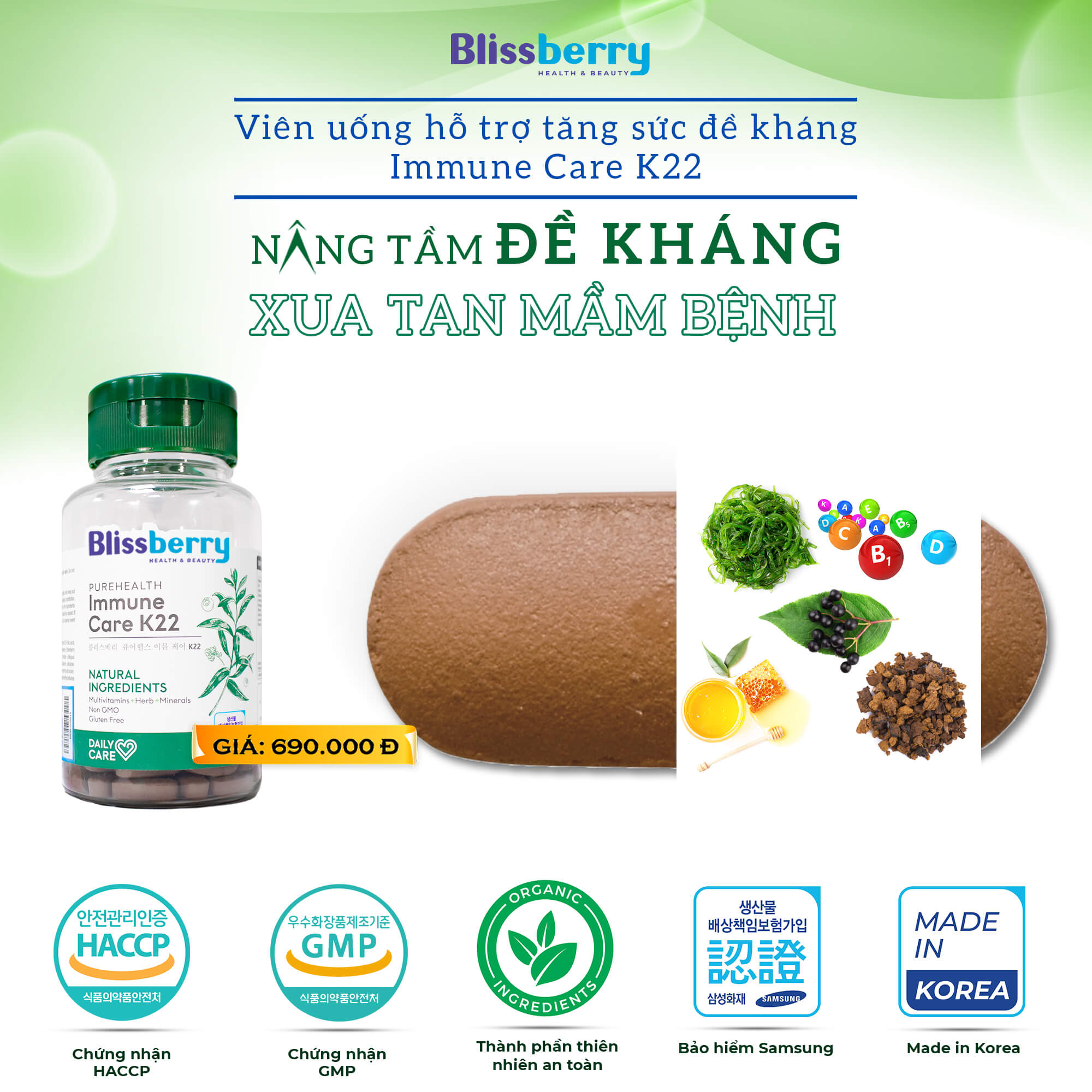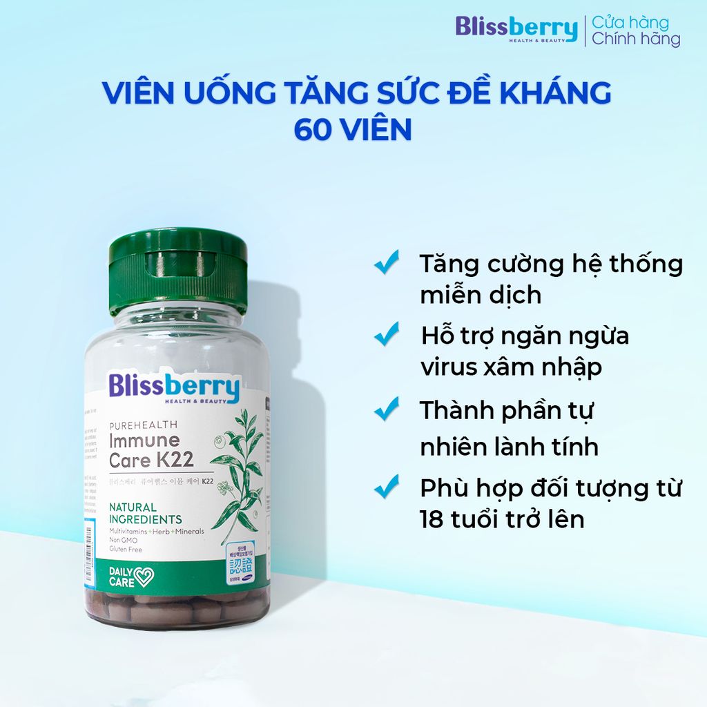 Viên uống tăng sức đề kháng Blissberry Purehealth Immune K22 60 viên